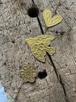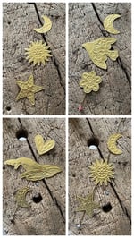 Et voilà une nouvelle mini vente de suspensions 💛 (décorations en métal embossé, doré des deux côtés, à partir de designs que j’ai créés), qui peuvent être accrochées à un mur, suspendues à une étagère, sur une vitre…